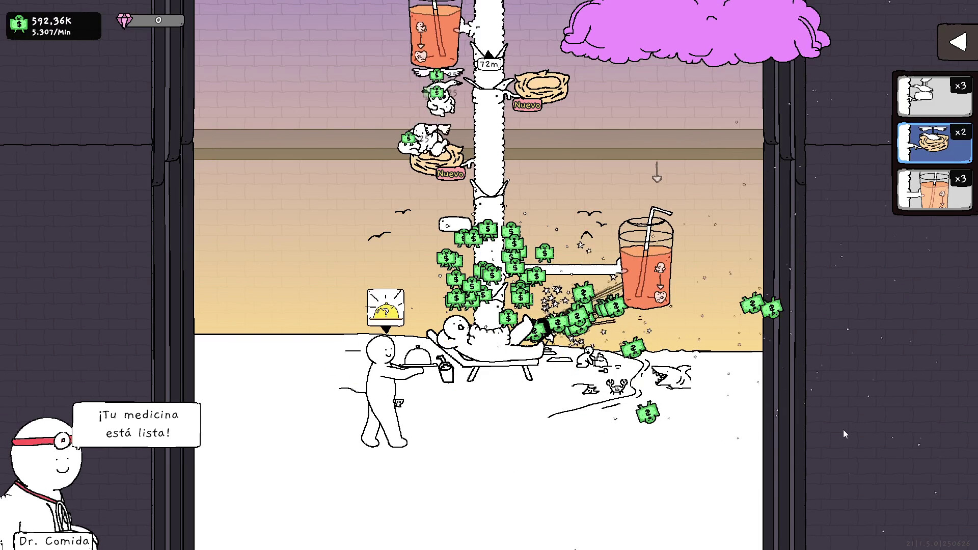 El juego mezcla mecánicas incrementales con complejas cadenas de sinergias al estilo Rube Goldberg: los bebés bajan por las ramas, rebotando en capullos para generar dinero, mientras que los «especímenes» encadenan combinaciones salvajes que potencian el crecimiento de la colonia.